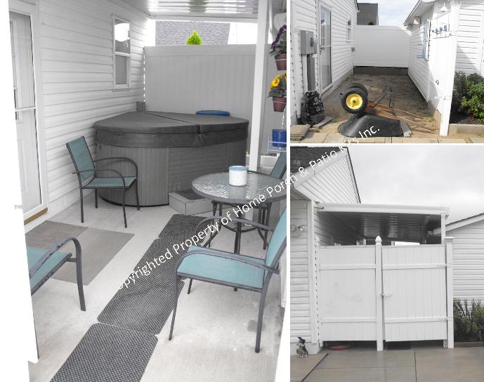 I finished the Hot Tub area and am very happy with the way it came out. Now I can use the hot tub all year round in comfort. Myself and another guy put the porch/patio kit together in two days. It went and easy after we had assembled the kit over the deck. Please see the before and after photos I have attached.
