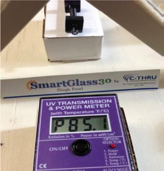 SmartGlass Efficiency U-Value Shading Coefficient Solar Heat Gain Coefficient Visible Light % UV %