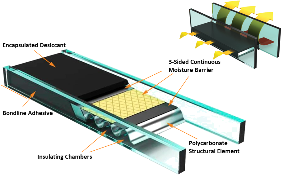 SmartGlass 60 – Hermetically sealed 1″ thick dual insulated glass unit with multiple layers of Low E coating and enviro warm edge spacer